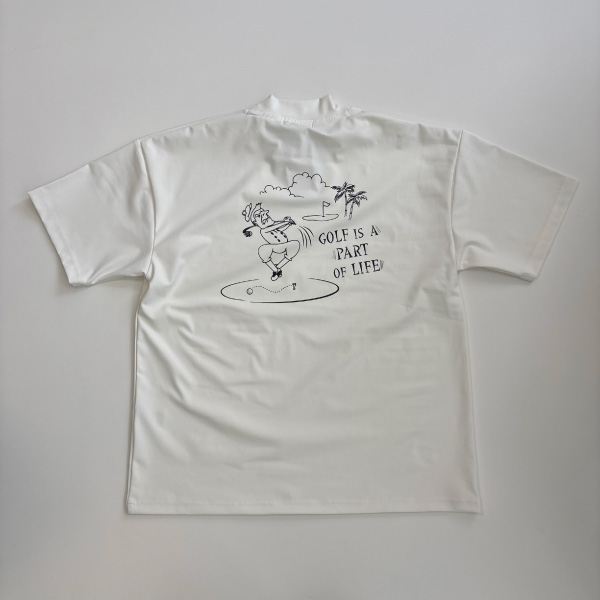 ゆるいタッチのキャラクター×「GOLF IS A PART OF LIFE!」のメッセージが、BOGEY LOUNGEらしい遊び心をしっかり表現しています。
